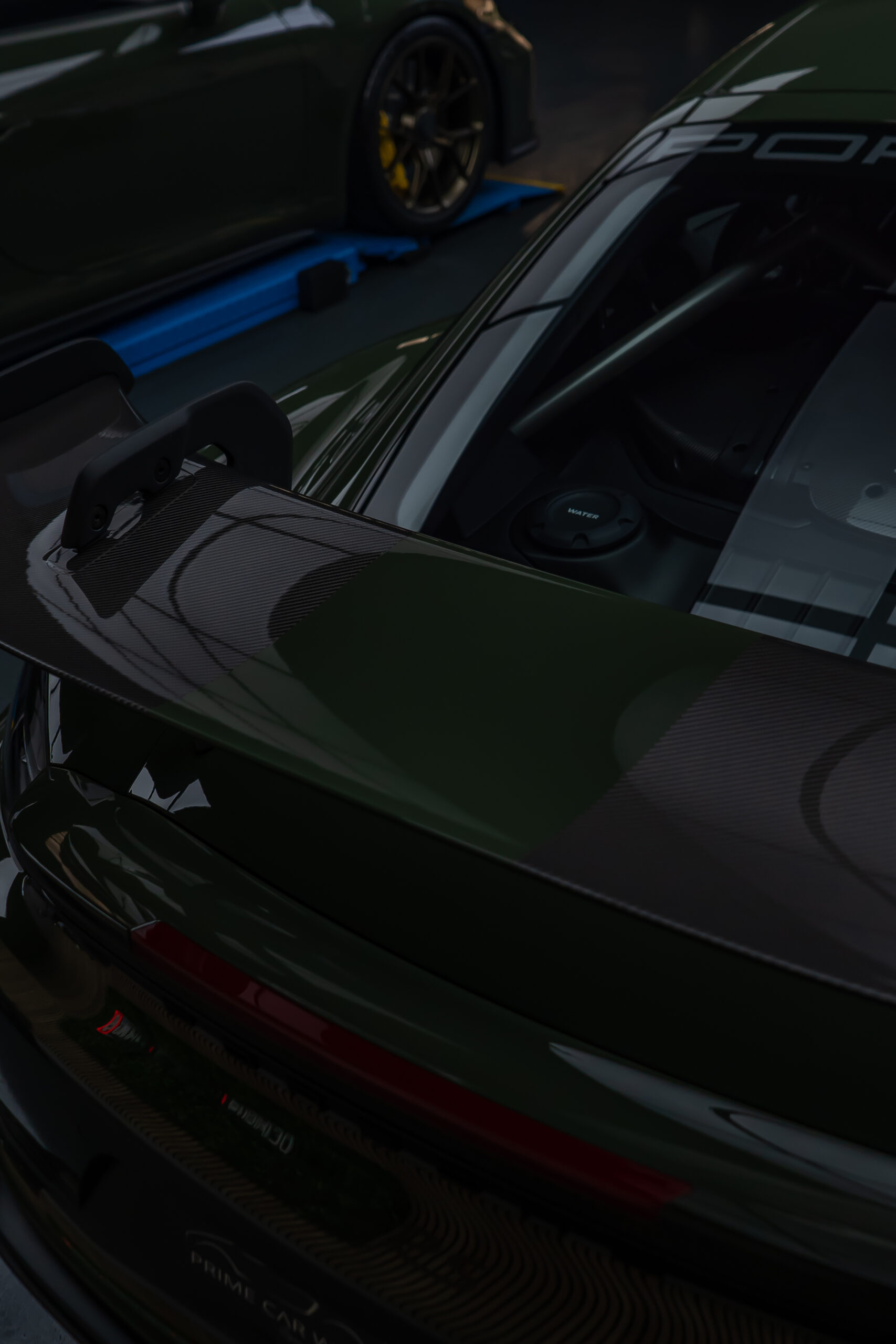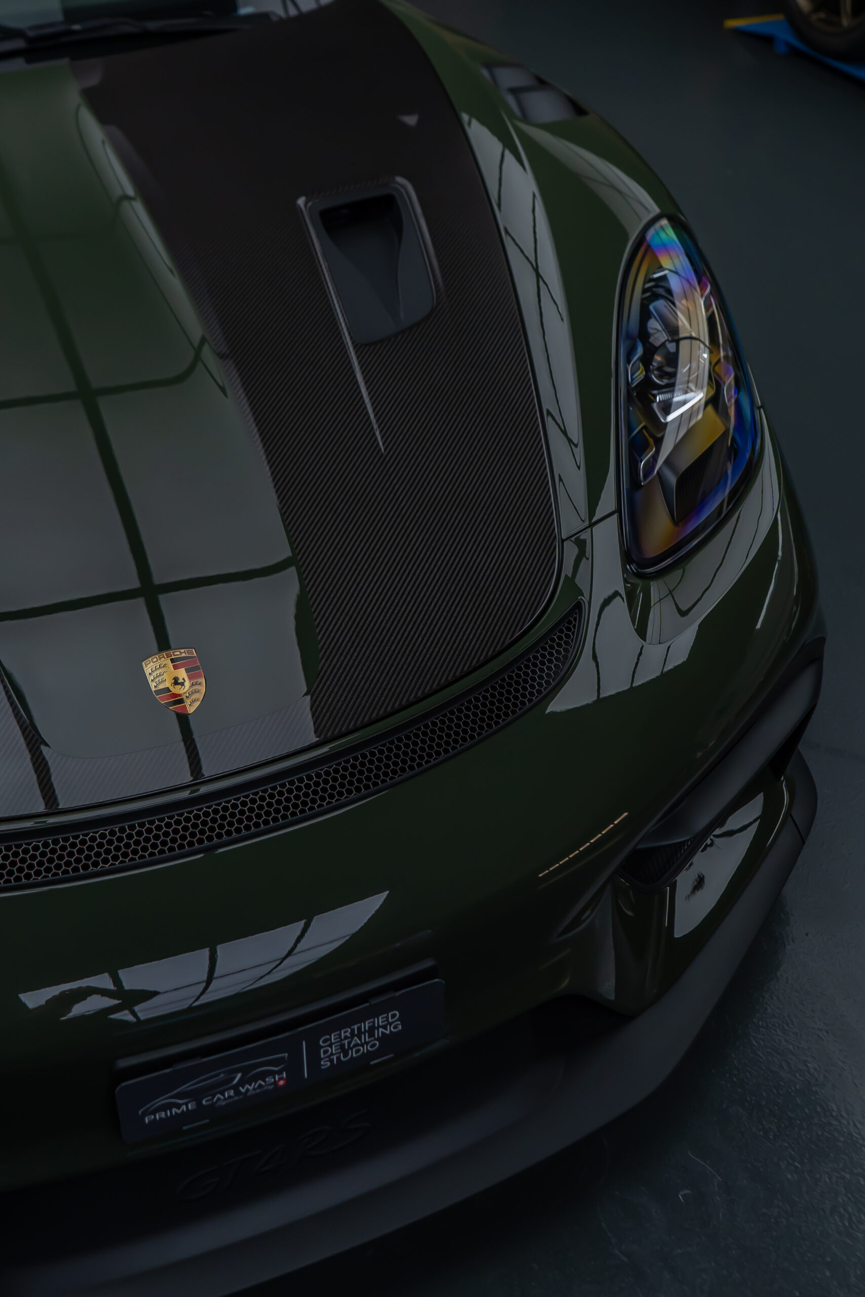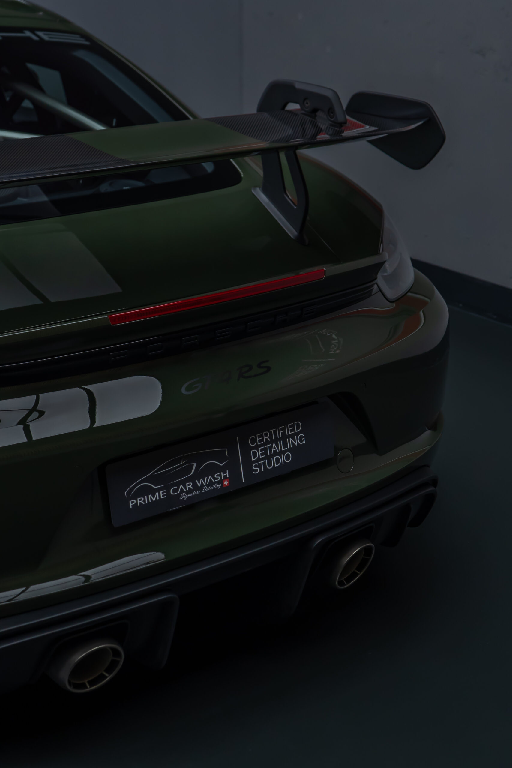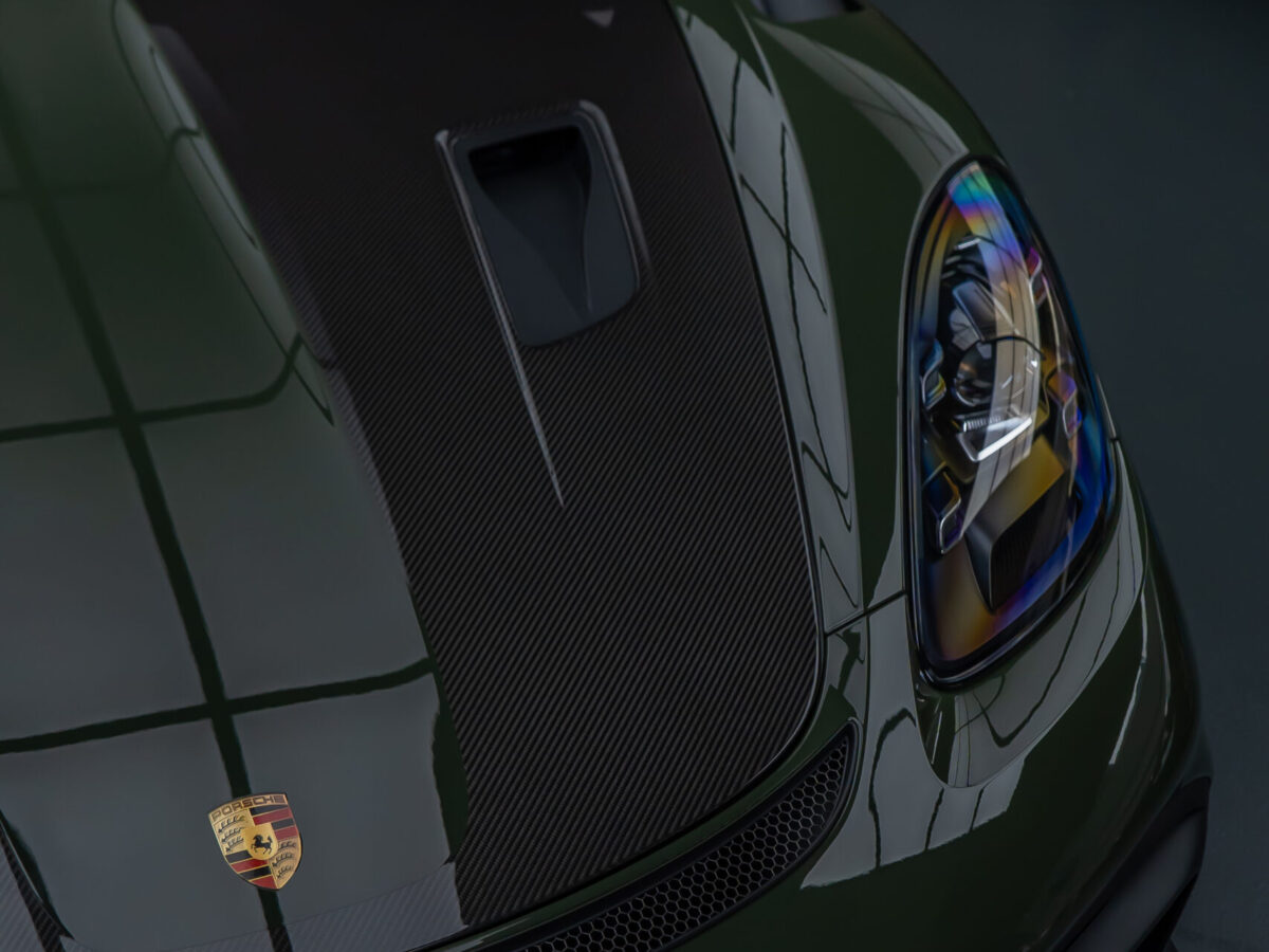Wir haben einen Porsche GT4 RS von GT-Silber in das PTS Black Olive verwandelt – ohne dass auch nur eine silberne Stelle sichtbar bleibt. Möglich gemacht hat dies unsere Color PPF, die Farbwechsel und hochwertigen Lackschutz in einem bietet.