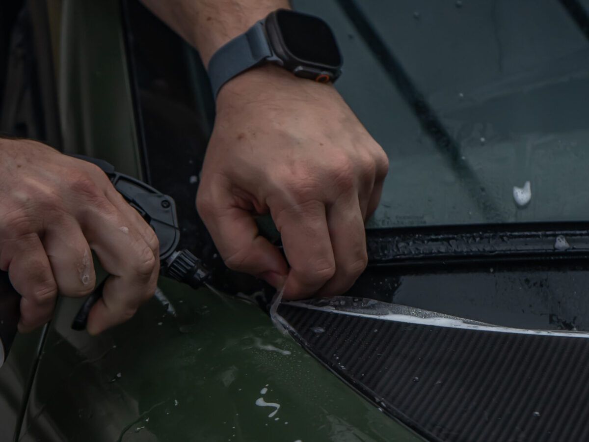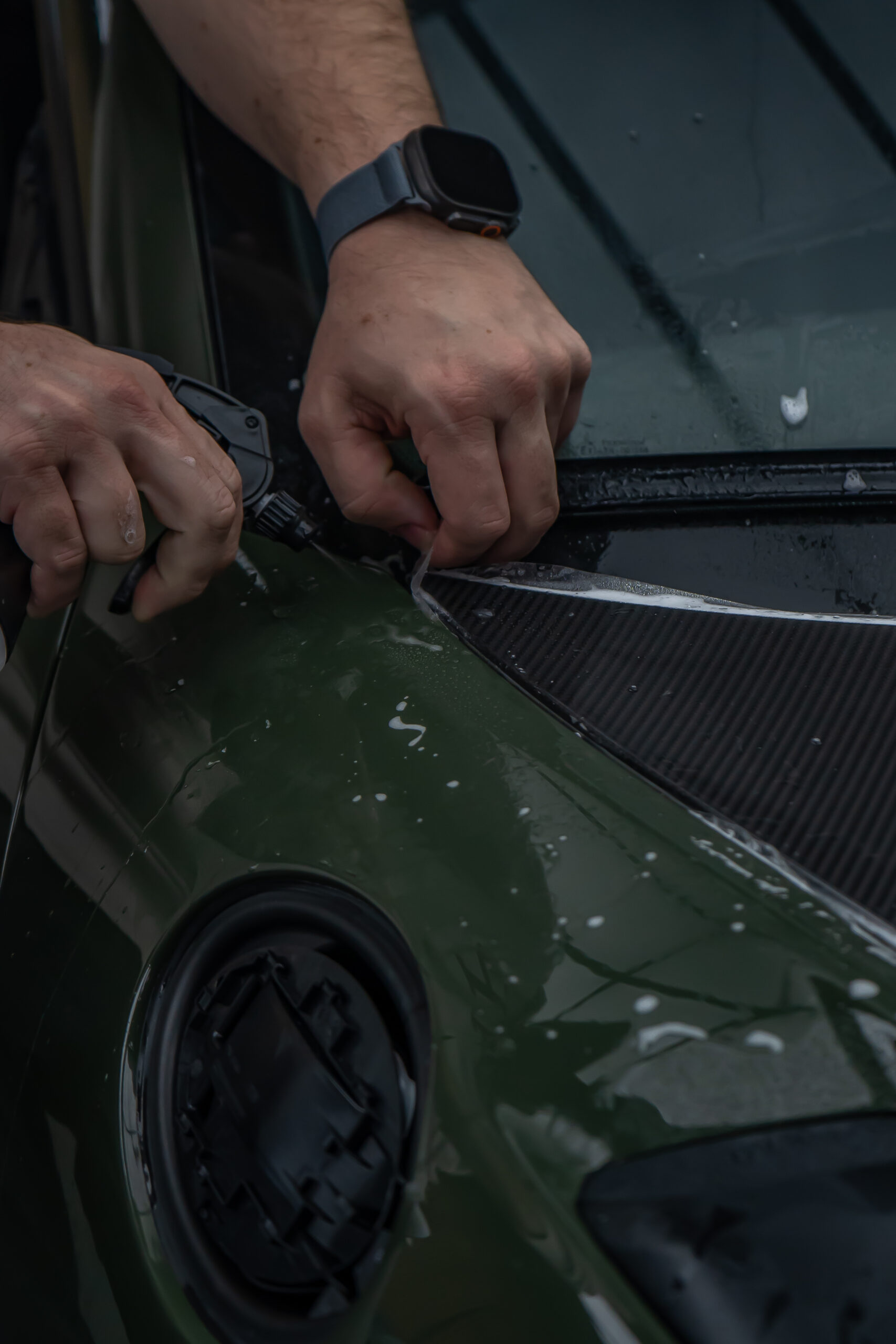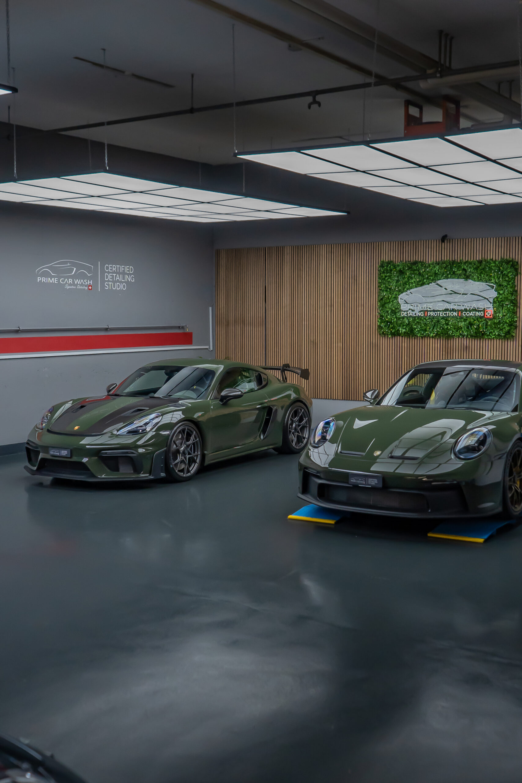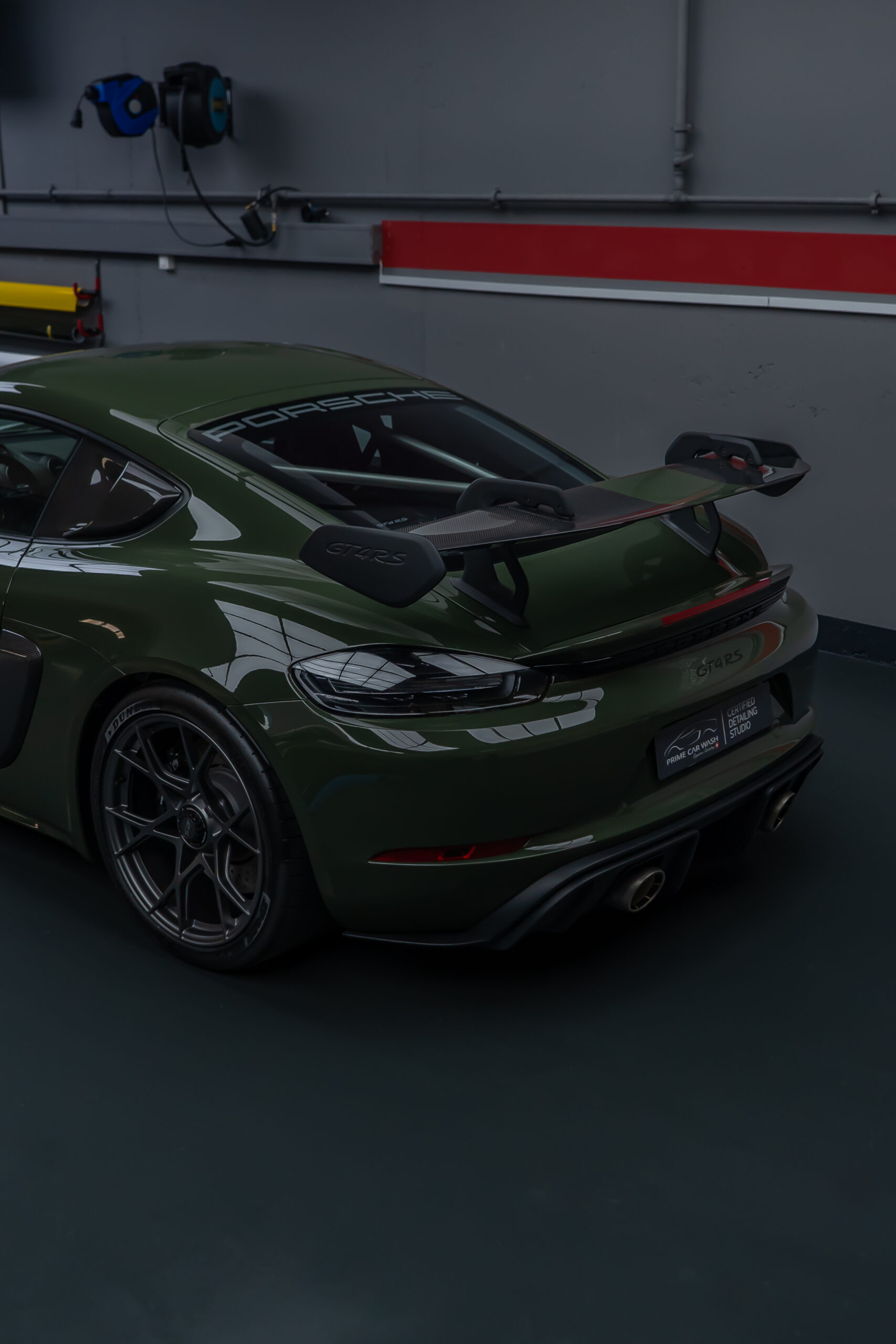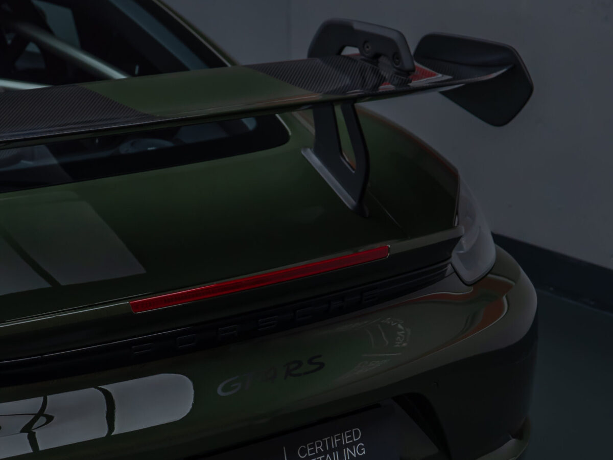 Wir haben einen Porsche GT4 RS von GT-Silber in das PTS Black Olive verwandelt – ohne dass auch nur eine silberne Stelle sichtbar bleibt. Möglich gemacht hat dies unsere Color PPF, die Farbwechsel und hochwertigen Lackschutz in einem bietet.