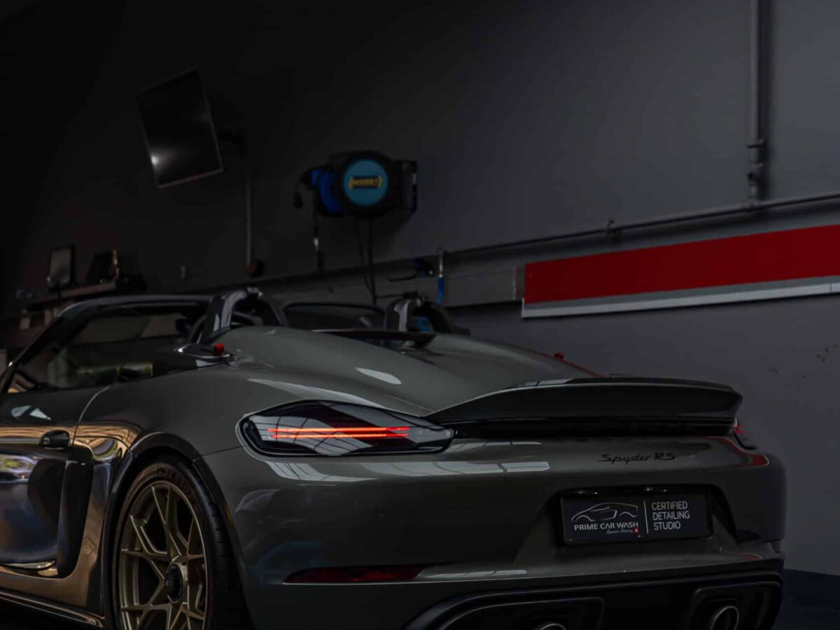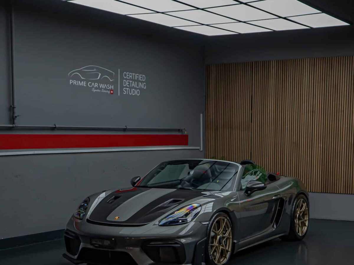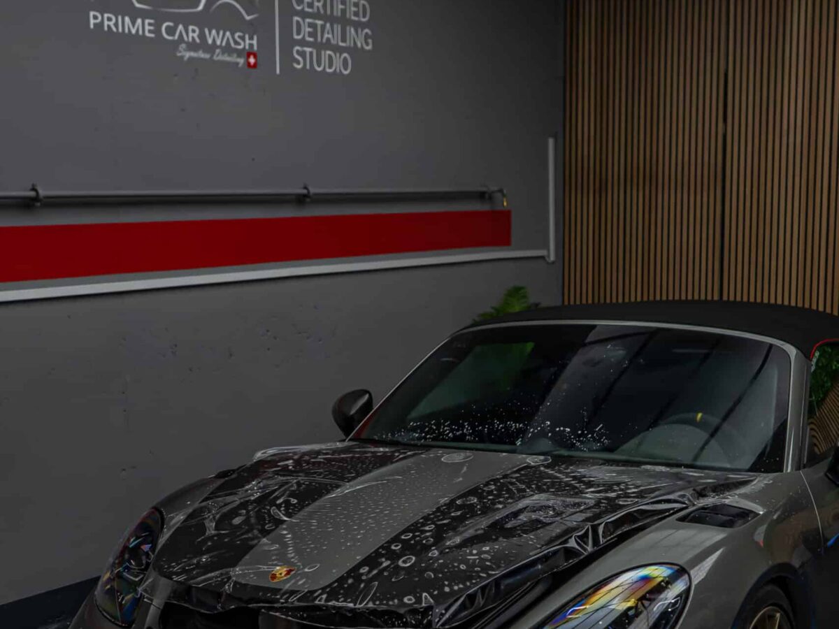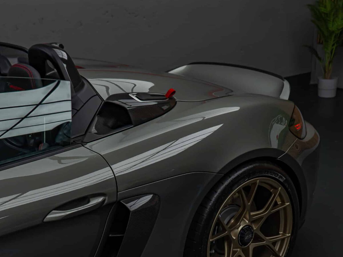 Der Porsche 718 Spyder RS steht für pure Performance und präzise Technik – bereit für Rennstrecke und kurvenreiche Landstrassen. Die Haube, Frontstossstange und Kotflügel wurden mit unserer selbstheilenden Lackschutzfolie geschützt. Sie bewahrt den Lack zuverlässig vor Steinschlägen, Kratzern und Umwelteinflüssen, ohne das originale Felsengrün Finish zu verändern – für eine nahezu unsichtbare Optik und maximalen Werterhalt.