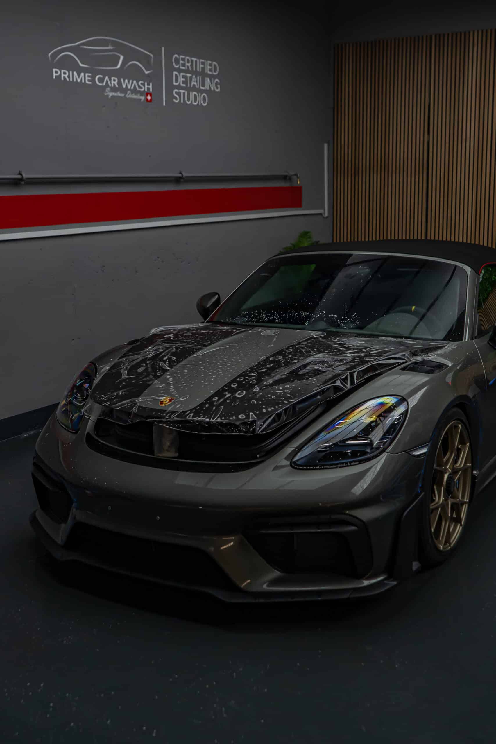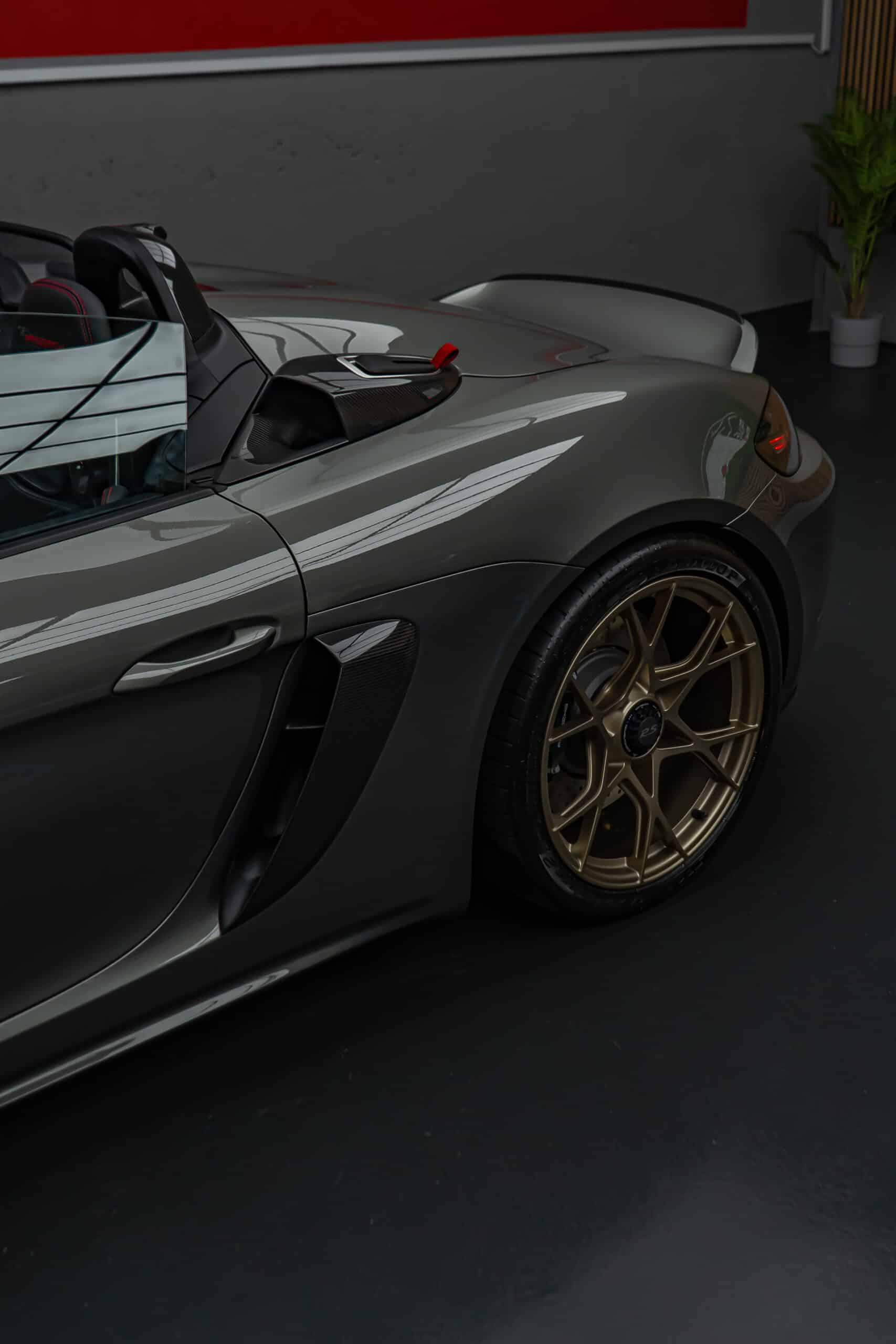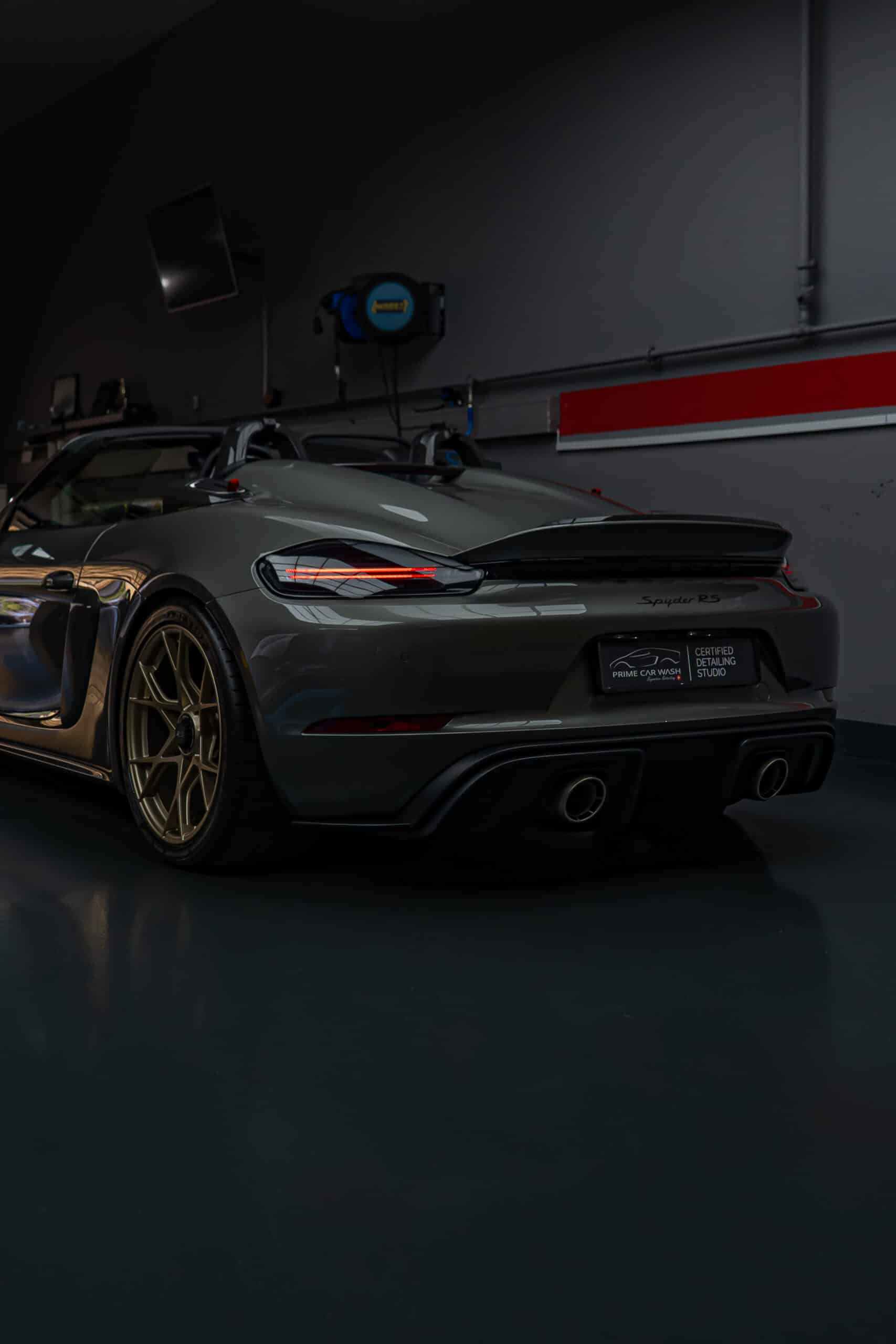 Der Porsche 718 Spyder RS steht für pure Performance und präzise Technik – bereit für Rennstrecke und kurvenreiche Landstrassen. Die Haube, Frontstossstange und Kotflügel wurden mit unserer selbstheilenden Lackschutzfolie geschützt. Sie bewahrt den Lack zuverlässig vor Steinschlägen, Kratzern und Umwelteinflüssen, ohne das originale Felsengrün Finish zu verändern – für eine nahezu unsichtbare Optik und maximalen Werterhalt.